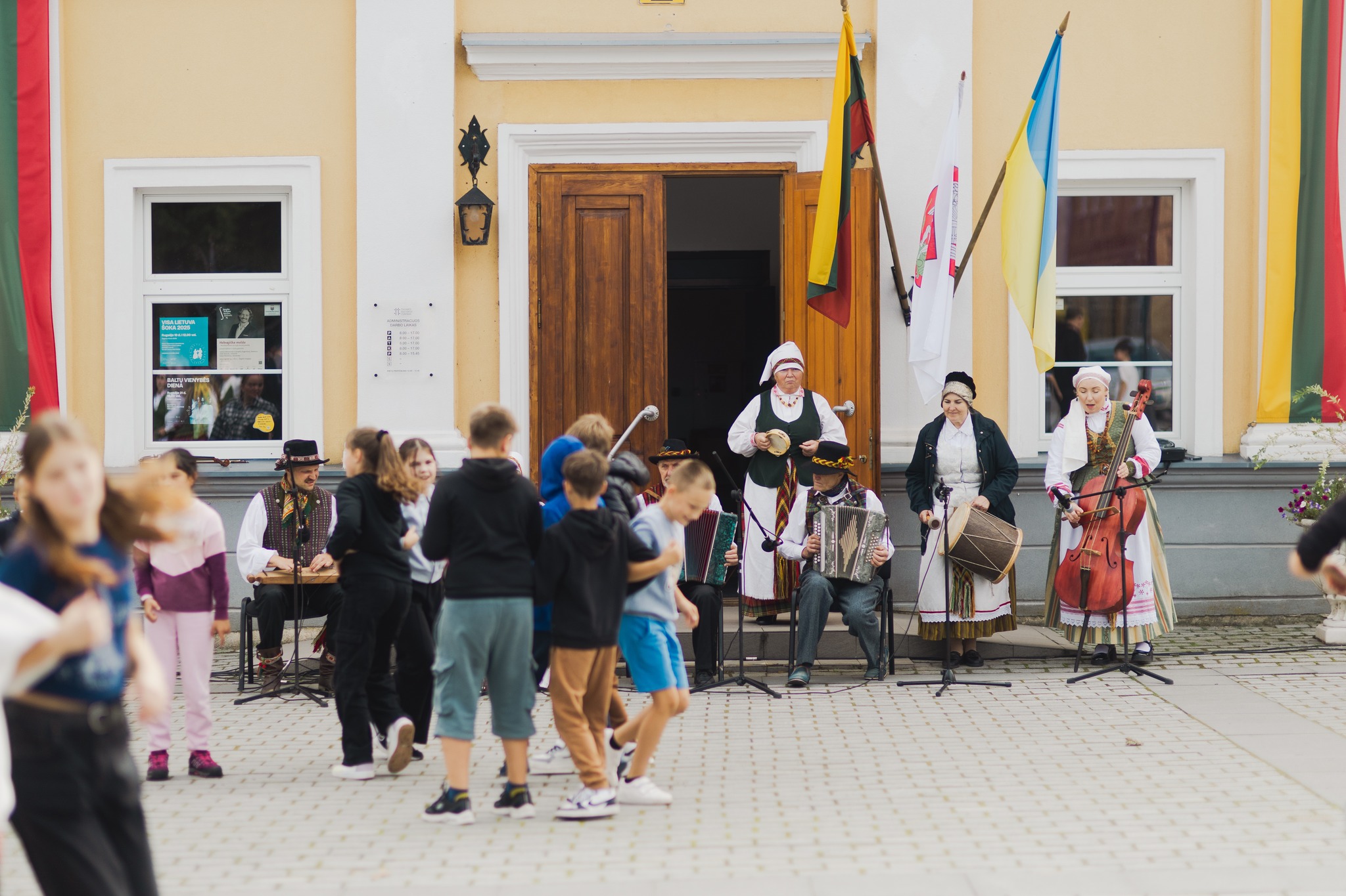 Dėkojame Žagarės gimnazijai ir visiems šokusiems – jūsų entuziazmas pripildė aikštę gyvybės. Akciją Žagarėje praturtino gyvai skambėjusi Žagarės kultūros centro folkloro ansamblio muzika.