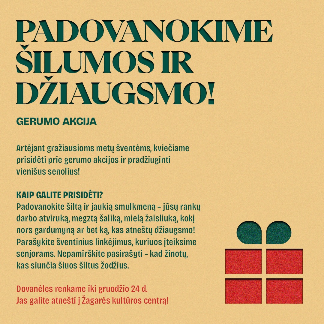Prisidėkite prie šios akcijos ir tapkite dalijančiais gerumą ir bendrystę – kartu kurkime šviesesnę ir jaukesnę švenčių nuotaiką tiems, kuriems to labiausiai reikia.